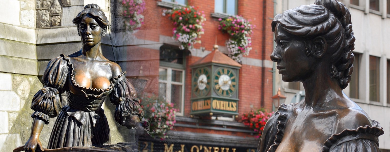 La leggenda di Molly Malone risale al XVII secolo e narra di una donna che di giorno si vedeva spesso girare per le strade di Dublino come pescivendola, trasportando un carretto e urlando: “Cockles and mussels (cardi di mare e cozze)!”. Di notte, invece, si racconta facesse la prostituta. Sarebbe poi morta in giovane età per una brutta “febbre” e si dice che il suo fantasma si aggiri ancora per le strade della città con il suo carretto. Nel 1988, in occasione delle celebrazioni per i mille anni di Dublino, fu eretta una statua a lei dedicata, ad opera dello scultore Jeanne Rynhart, ancora oggi presente nella capitale e visitata dai turisti. In passato posizionata in Grafton Street, è stata poi spostata, dal 2014, in Suffolk Street.
