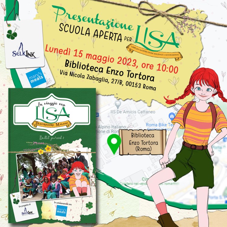 LISA ha fatto capolino in biblioteca per incontrare dei nuovi amici! Grazie alla disponibilità della biblioteca “Enzo Tortora” di Roma, infatti, si è svolto il 15 maggio l’incontro con un gruppo di ragazzi della Scuola Secondaria di Primo Grado Carlo Cattaneo I.C. Elsa Morante, per raccontare loro il secondo viaggio di Lisa, racchiuso nel bullet journal in cui ha raccolto le storie e i disegni dei ragazzi del Malawi. Il libro, In viaggio con LISA. Destinazione Malawi, realizzato in collaborazione con l’organizzazione Mary’s Meals, è online già da qualche mese ed è stato molto apprezzato dai giovani studenti della scuola coinvolta.