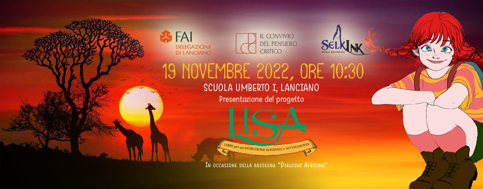LISA non si ferma e il prossimo 19 novembre sarà ospite della rassegna “Dialoghi africani”, che si terrà a Lanciano, in Abruzzo, dal 13 al 27 novembre. Promossa dall’associazione “Il Convivio del Pensiero Critico” di Ersilia Caporale, in collaborazione con la delegazione FAI di Lanciano, gli istituti scolastici locali e il Comune di Lanciano, l’eventoContinua a leggere “LISA a Lanciano per Dialoghi africani”